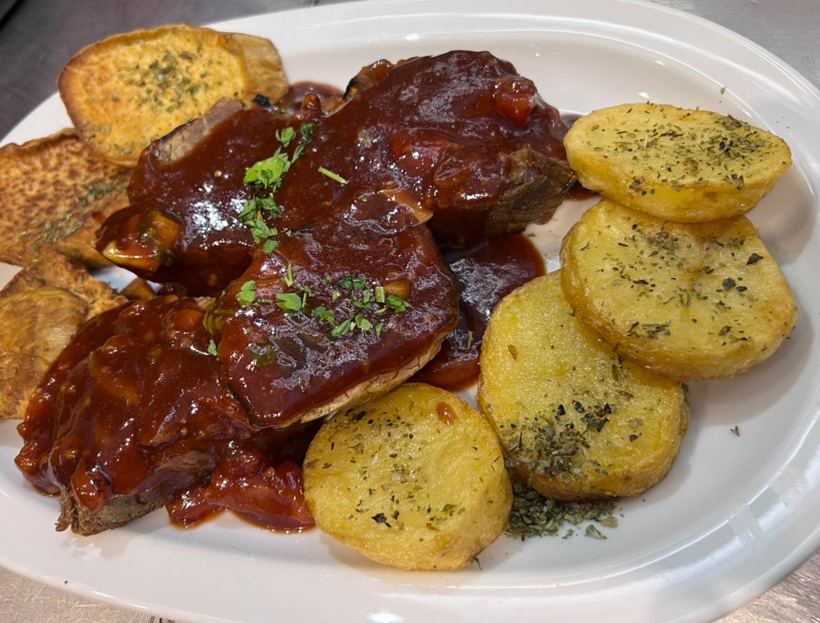 • con papas y batatas al horno Bondiola de Cerdo A La Barbacoa $15,750.00
